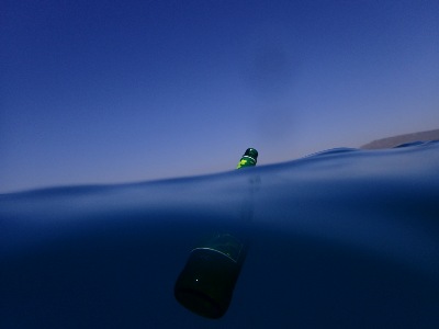 So bitte nicht.Die Flasche wurde später aus dem Meer genommen und entsorgt.