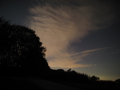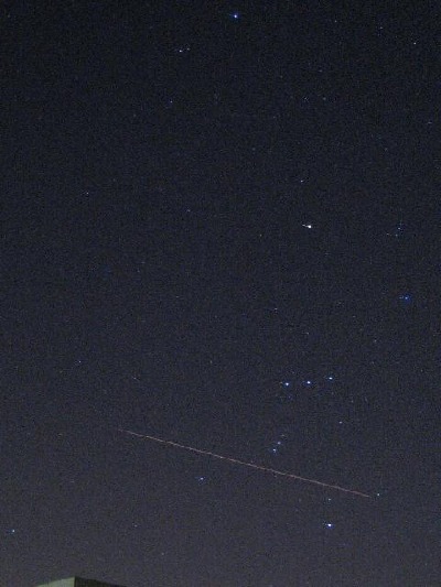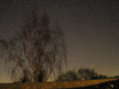 Im Hintergrund (nicht sichtbar ) ist eine Laterne . Die helle Linie unten rechts ist ein Flugzeug .Und der Baum stört auch die Sicht.