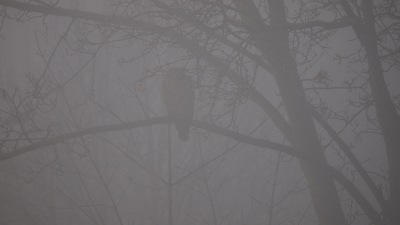 Dieser Vogel flog ca. 10 Meter entfernt lautlos an mir vorbei. Sehr beeindruckend. Für dieses Foto im dichten Nebel ( Sichtweite ca 20 /25 Meter ) musste ich viel probieren mit den Einstellungen an der Blende und Belichtungszeiten.