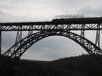 Dampflok auf der Müngstener Brücke.Die Brücke ist die höchste Eisenbahnbrücke (107 Meter hoch ) in Deutschland.Das Foto und die beiden nachfolgenden entstanden zum 125 Jährigen bestehender Brücke.