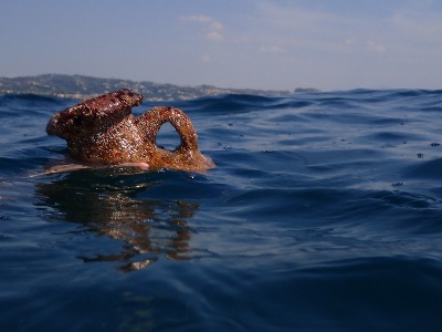 Tauchen in nähe von Neapel. Die Amphore wurde nach dem Foto wieder auf den Meeresboden zurückgelegt. Für die nächsten Taucher.